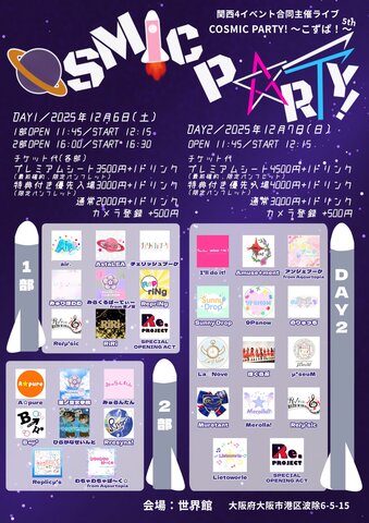 1部 開場 11:45 / 開演 12:15 2部 開場 16:00 / 開演 16:00 |