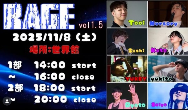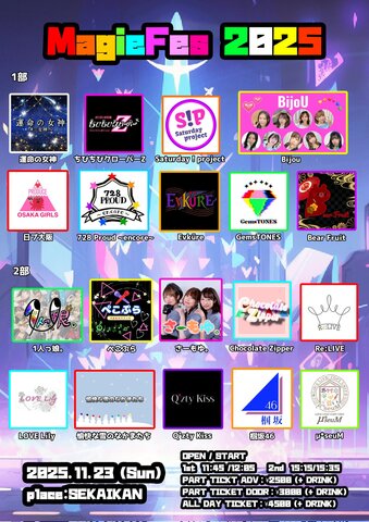 1部 start 14:00 close 16:00 2部 start 18:00 close 20:00 全席指定席 \4000 |